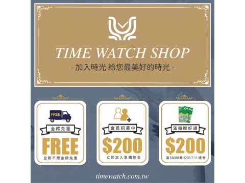 ✵加入時光鐘錶公司與您共度美好時光✵ 即日起加入官網會員三重好禮贈予您 ❊ 第1重|加入會員即贈 $200 元購物金 ❊ 第2重|不限金額全館享 免運 優惠 ❊ 第3重|單筆金額滿$5000即贈 $200...