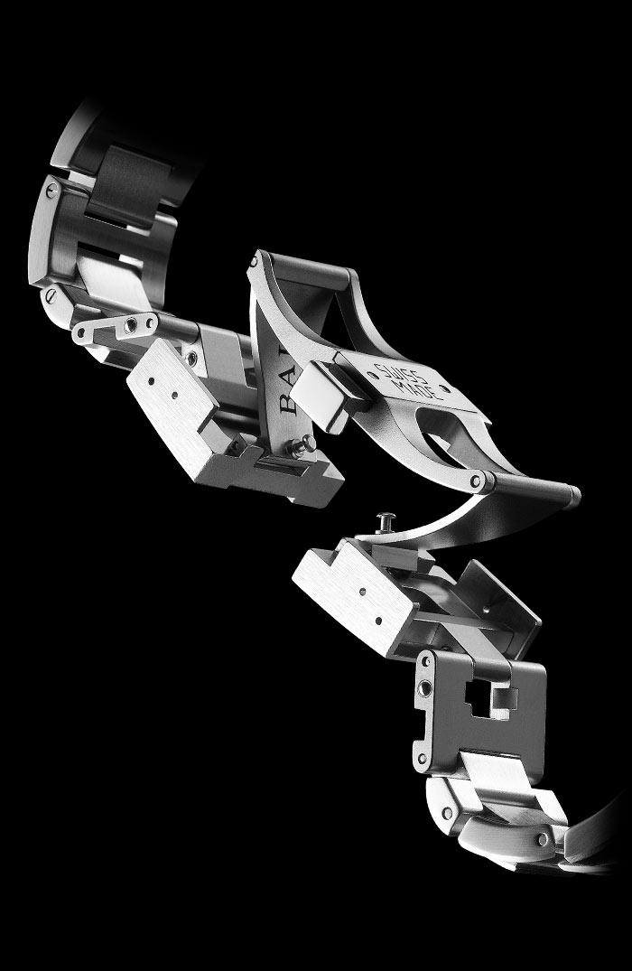 ▪ 錶殼:不銹鋼錶殼/藍寶石水晶玻璃雙向轉動弧形外圈,配有自體發光微型氣燈,方便夜間讀時/Mu-metal高導磁合金保護罩/專利註冊 Amortiser® 防震裝置