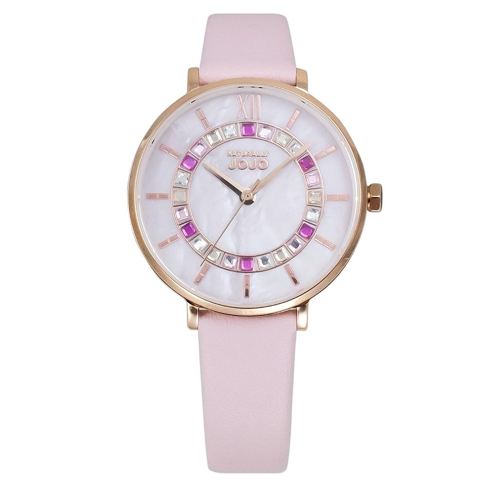NATURALLY JOJO JO96994-11R 簡約甜美 櫻花粉 漸層鑽 皮革腕錶