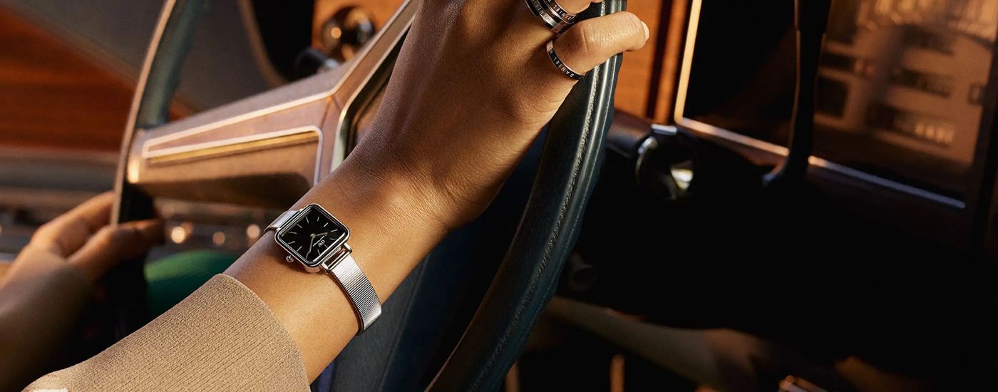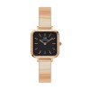 Quadro Studio 採用精緻小巧的黑色正方形錶盤,搭配時尚流線的鋼琴錶帶。 採用拋光不銹鋼製成,並提供精緻的玫瑰金鍍層,永恆的新復古時尚宣言。