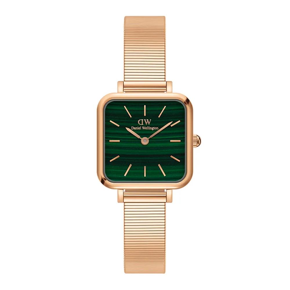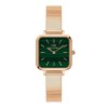 Quadro Studio採用精緻小巧的伯朗大道綠正方形錶盤,搭配時尚流線的鋼琴錶帶。 採用拋光不銹鋼製成,並提供精緻的玫瑰金鍍層,永恆的新復古時尚宣言。