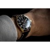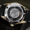 青銅在漸層黑錶盤與黑色皮革搭襯下更加唯美,特殊的皮革袋中配有棕色皮帶及快拆的裝備