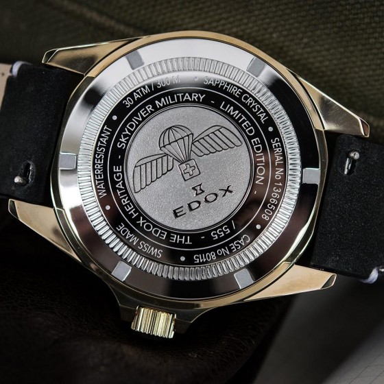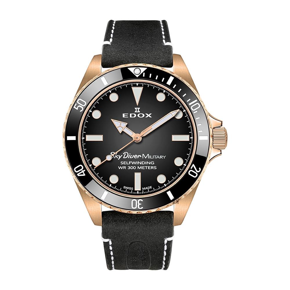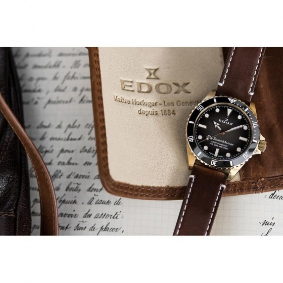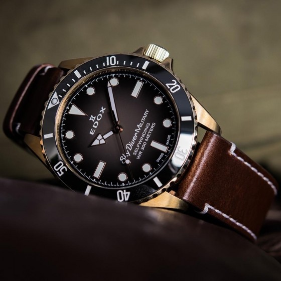 以令人驚嘆的青銅錶殼呈現,這種合金強烈凸顯與軍方的緊密聯結也將EDOX防水特性表現無遺