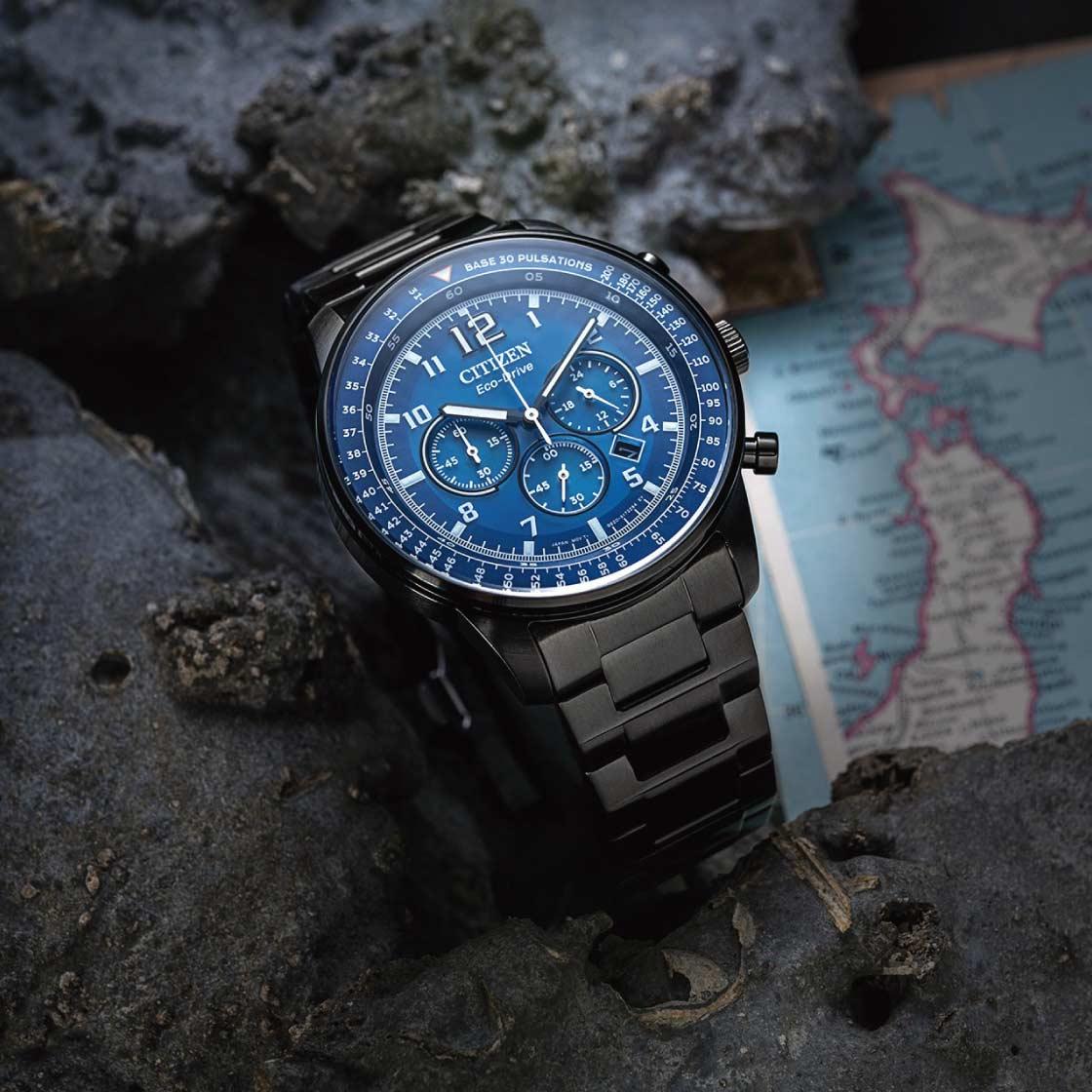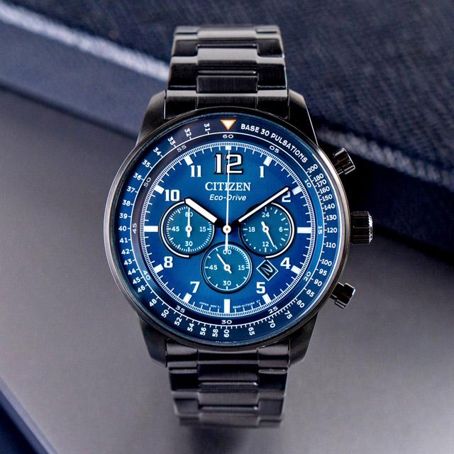 CITIZEN星辰熟練細膩的日本工藝 詮釋人類與時間永不切割,互相依存的緊密關係 日式一貫嚴謹的傳統製錶工藝,融入現代優雅的簡潔的設計 獨具當代潮流的搭配選擇,實用性與設計相互激盪出的矚目時尚 全不鏽鋼打造,錶盤以飛行錶造型設計,錶款配備碼錶計時功能,日期/24小時制小錶盤顯示,黑色錶殼及錶帶,展現與眾不同的風格。搭載Eco-Drive光動能動力,使佩戴中能輕鬆地充電,保持腕錶持續運行。