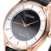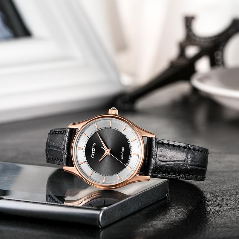 銀與黑色錶盤下由簡單線條構成,僅以CITIZEN品牌與Eco-Drive字樣靜止於錶盤之上,沒有複雜的炫目的配飾,配以立體時標排列於外圈,彷彿刻劃出時光的軌跡,呈現自然簡單的設計概念。錶身內裝功能更是不容小覷,用以吸收光源的太陽能板,藏於錶環側面,呼應樂活環保的生活概念,不鏽鋼錶殼與皮革錶帶,搭配50米防水功能,可隨心所欲的環遊於世界各地,而無後顧之憂。