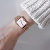極簡風格方型時尚鋼帶錶 復古又摩登的方型腕錶配件,展現典雅知性穿搭,以閃耀鑲鑽設計結合金屬錶帶,為職場女性打造專屬的知性氣質錶款。
