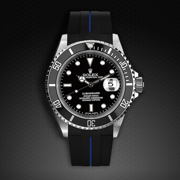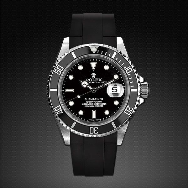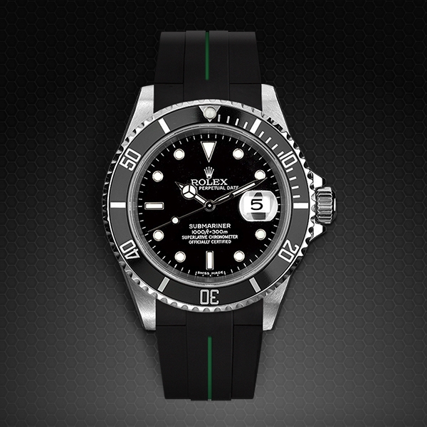 雙色硫化橡膠錶帶設計適合勞力士 Submariner 錶殼和 Deployant 表扣*。 這款錶帶採用“ Blocked Integration ”工程,結合實心嵌件,可完美、固定地嵌裝在 Submariner 40 毫米錶殼上。  注意:此錶帶與 Submariner Ceramic 的 Glidelock 表扣不兼容,後者是本網站提供的另一種產品)。