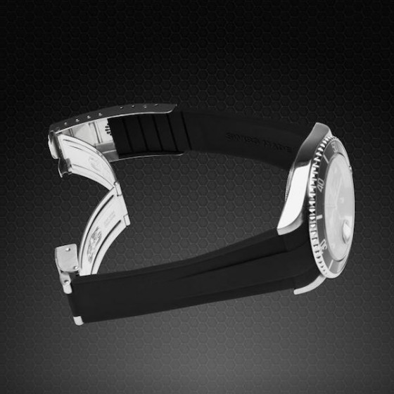 硫化橡膠錶帶經過精確校準以適合 GMT Master(與新陶瓷表圈型號不兼容)。這款錶帶採用“塊狀集成”工程,結合實心嵌件,可完美、靜止地嵌裝在 GMT Master* 上。