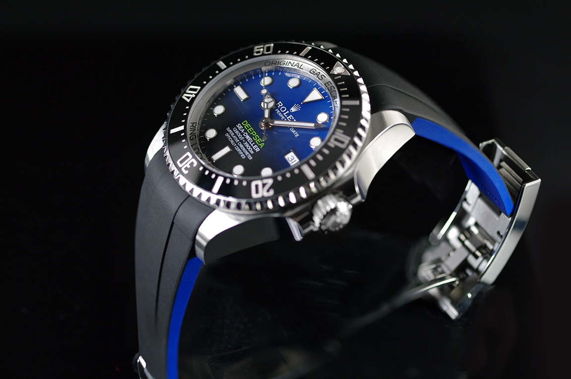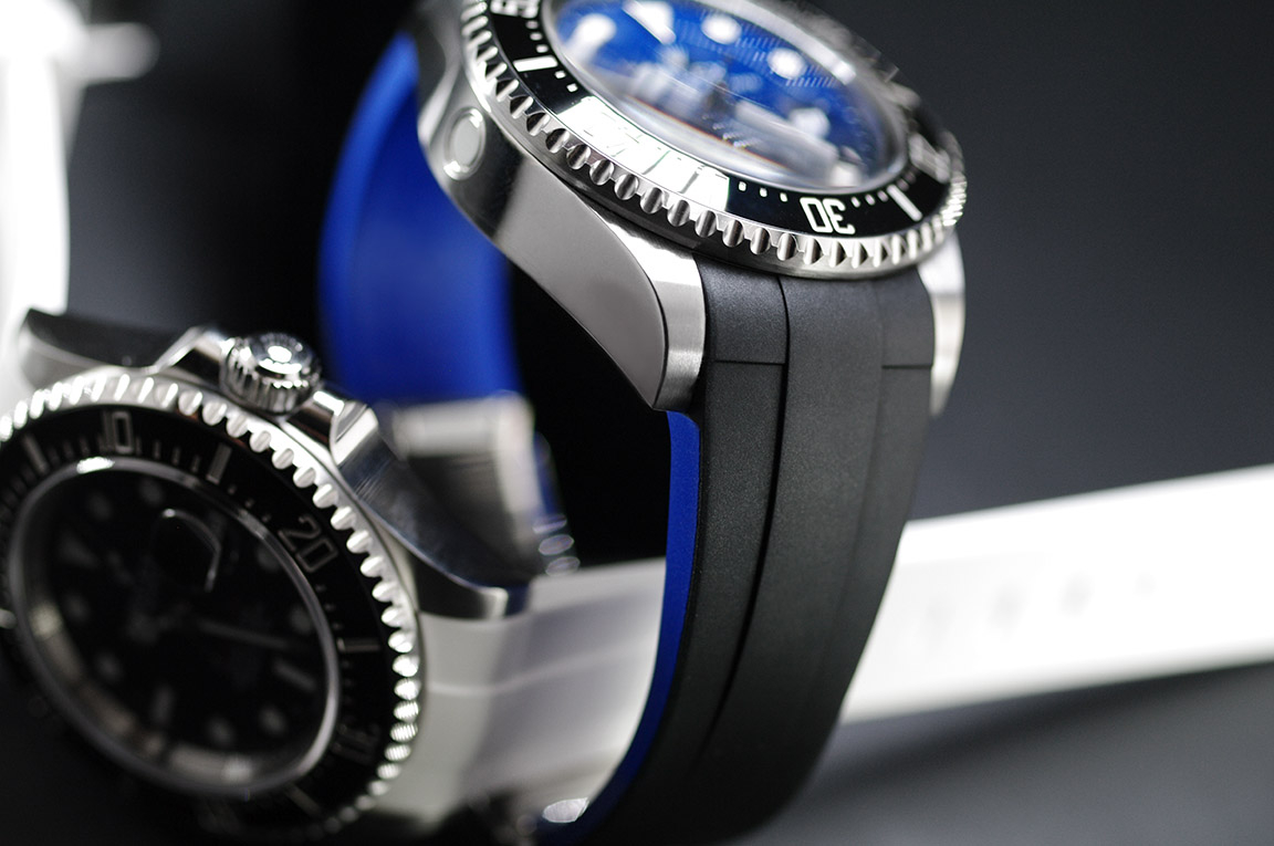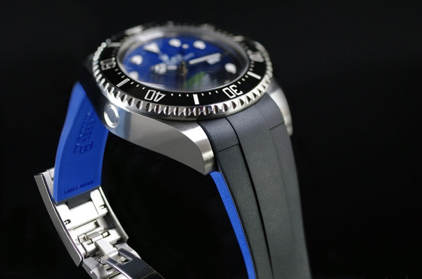 雙色碳纖維繫列橡膠錶帶專為匹配勞力士 Deepsea 126660 錶殼和 Glidelock 表扣而設計。我們獨有的 STRENGTH INFUSION 技術為您的勞力士 Glidelock 表扣提供了針對摩擦、重量和頻繁微調的升級支持。碳纖維分子在成型過程中融合在硫化橡膠中。結果:顯著增加垂直和橫向應力阻力,同時保持佩戴者手腕周圍柔軟、靈活的舒適度。