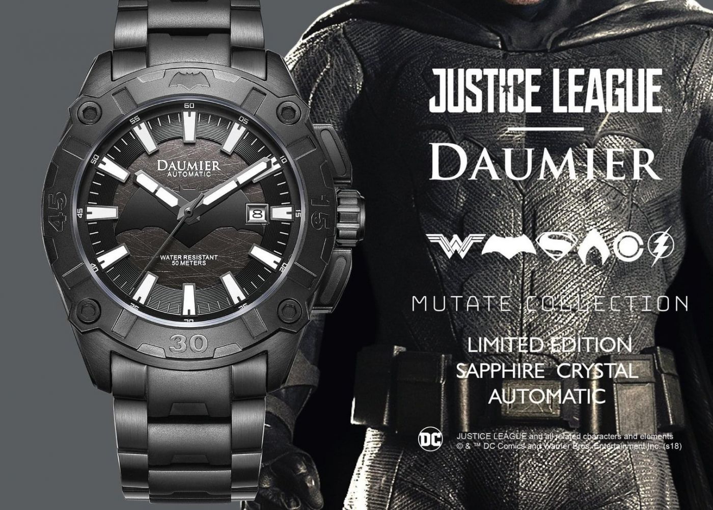 DAUMIER丹瑪聯乘JUSTICELEAGUE 正義聯盟。DAUMIER丹瑪以超級英雄為主題,擔當設計製作《正義聯盟》限量生產系列腕表的重任。DAUMIER丹瑪設計師們對「正義聯盟」腕表創作有著獨特的見解,設計師們認為如果英雄在執行任務時佩戴手錶,會更易掌握時間。DAUMIER設計團隊火力全開的為每位英雄設計專屬腕表,開發出三大產品系列,滿足每位元英雄變身前及變身後使用,設計非常貼心。