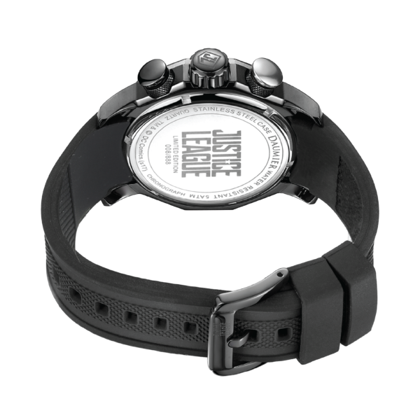 ELITES COLLECTION 阿裡斯系列:以六位超級英雄的團隊意識為核心,ELITES系列設計蘊含著正義聯盟的團隊隊形。統一的款式設計,內裡包含著各位英雄的專屬顏色及徽號,讓每一位成員在生活及作戰中都能得到團隊力量加持。腕表搭載計時馬錶石英機芯,48mm大直徑錶殼,巧妙展現了超級英雄們的豪邁一面。