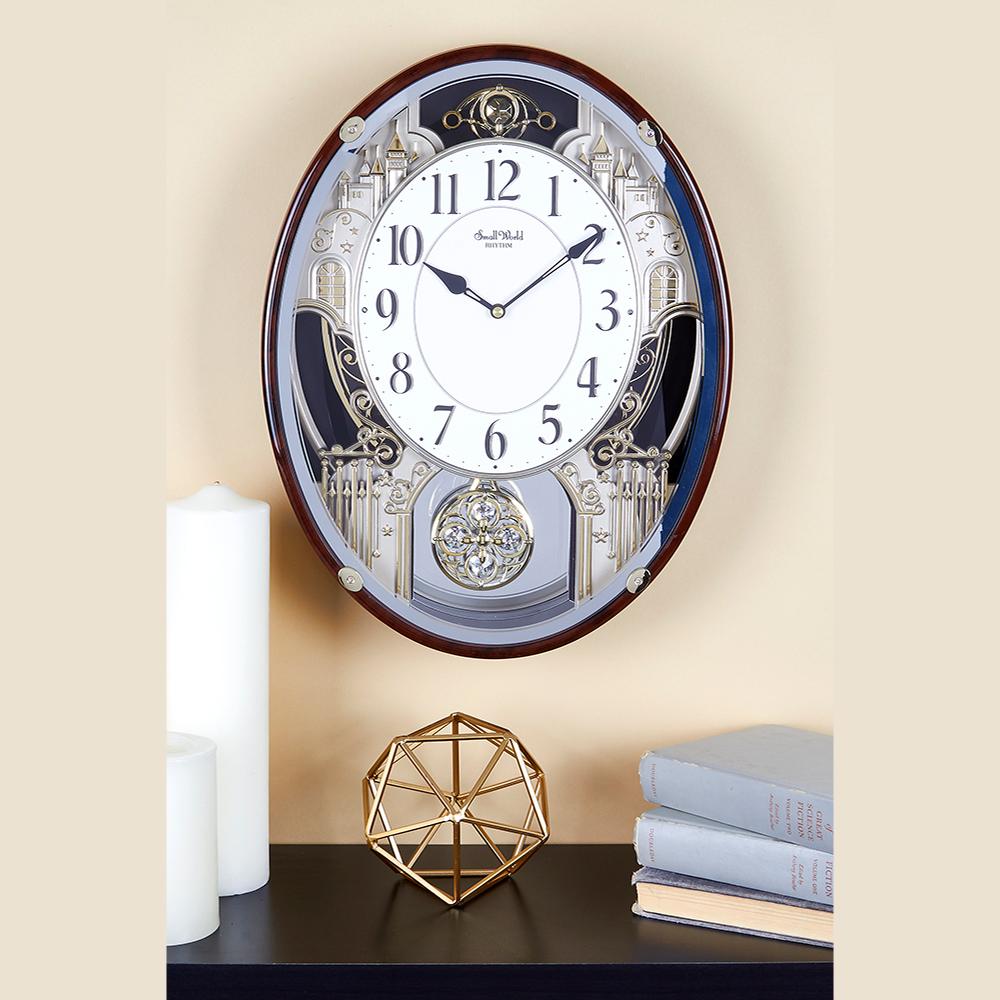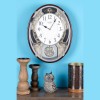 - 除了底部和麵後不斷擺動的鐘擺外,這款時鐘還與它的機芯配合選擇了 30 首旋律中的一種,包括 12 首流行旋律、12 首經典旋律和 6 首聖誕歌曲