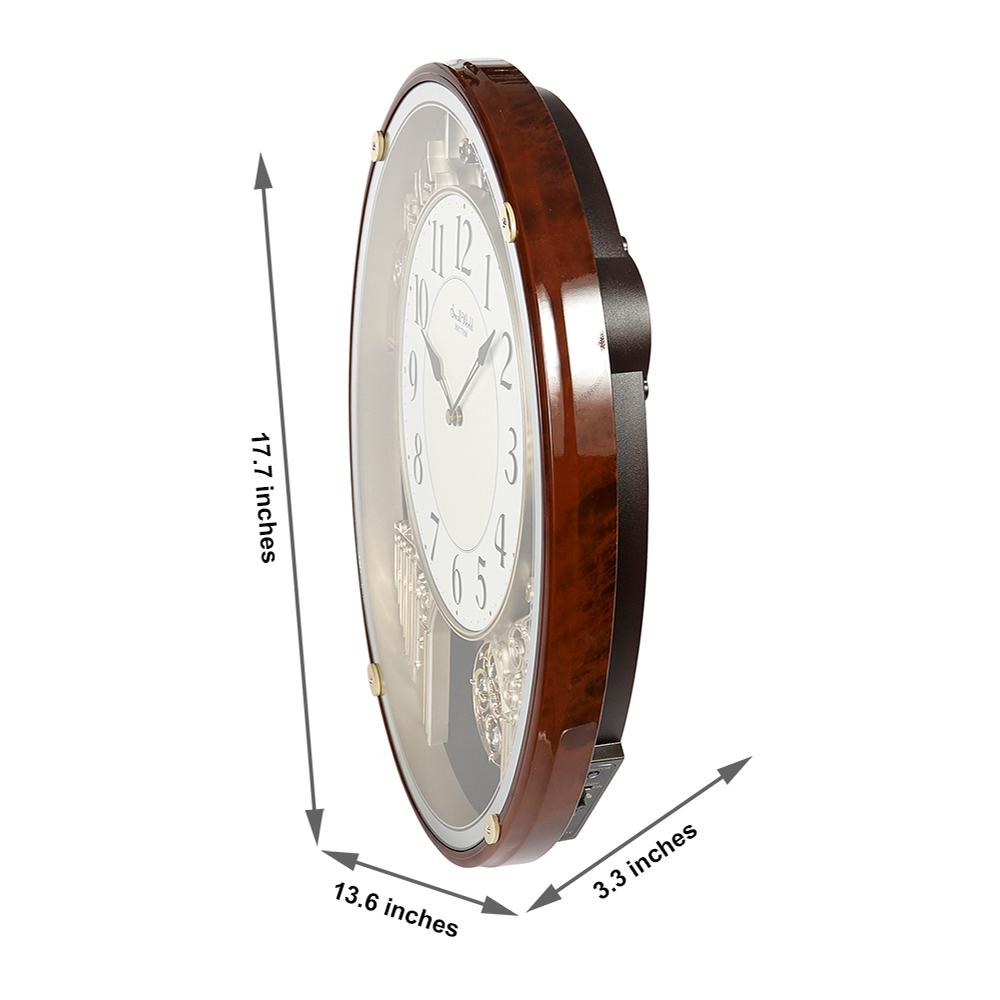 - 除了底部和麵後不斷擺動的鐘擺外,這款時鐘還與它的機芯配合選擇了 30 首旋律中的一種,包括 12 首流行旋律、12 首經典旋律和 6 首聖誕歌曲
