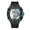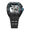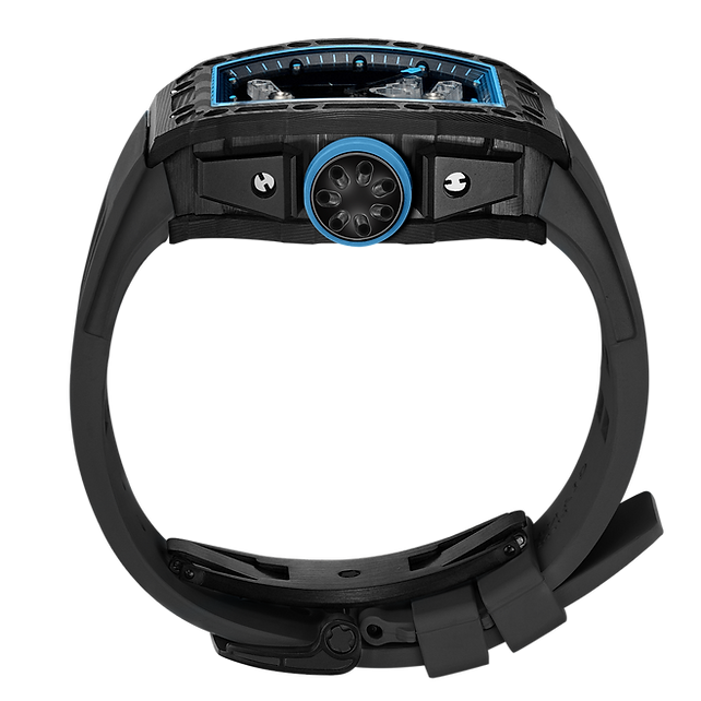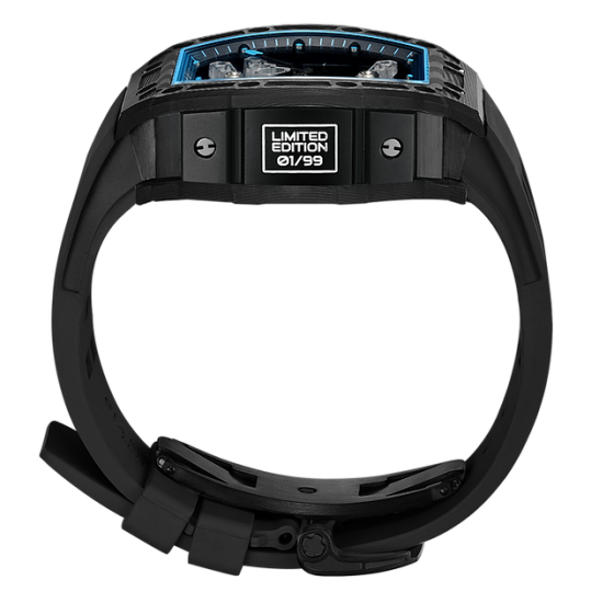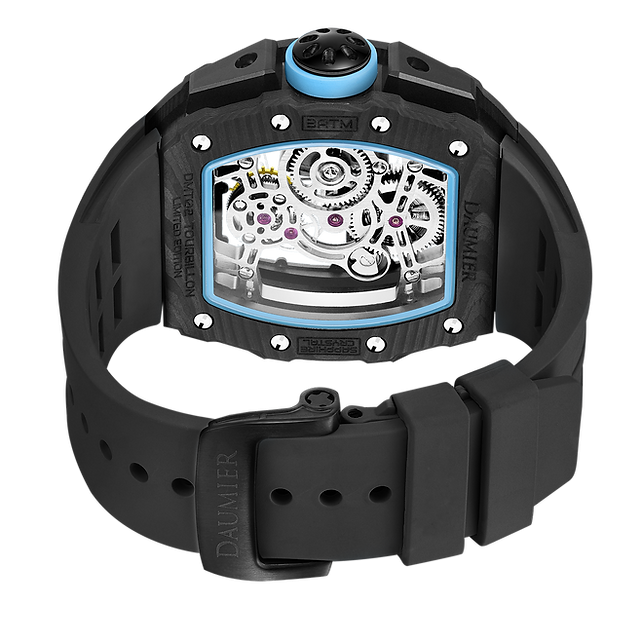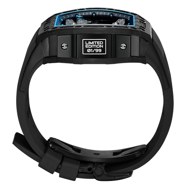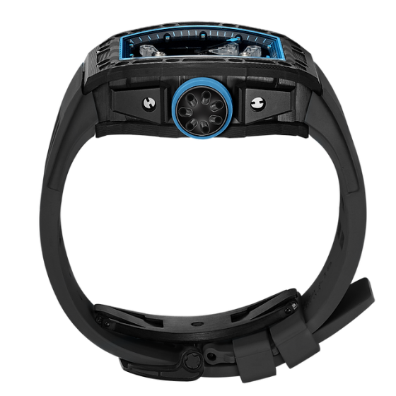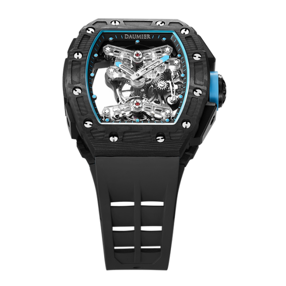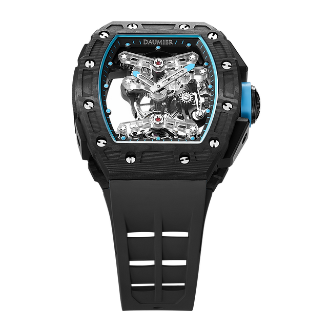 機芯資料及功能:高擺動頻率陀飛輪鏤空設計手動上發條機械機芯,陀飛輪透視劍形橋拱及六角型蜂巢式設計機芯支架,並獲得外觀設計專利