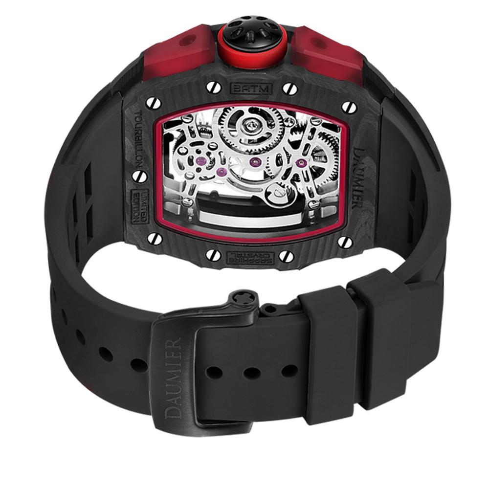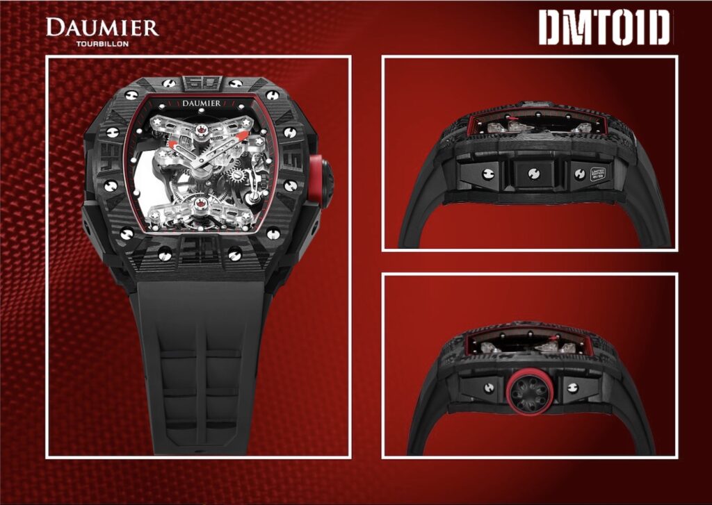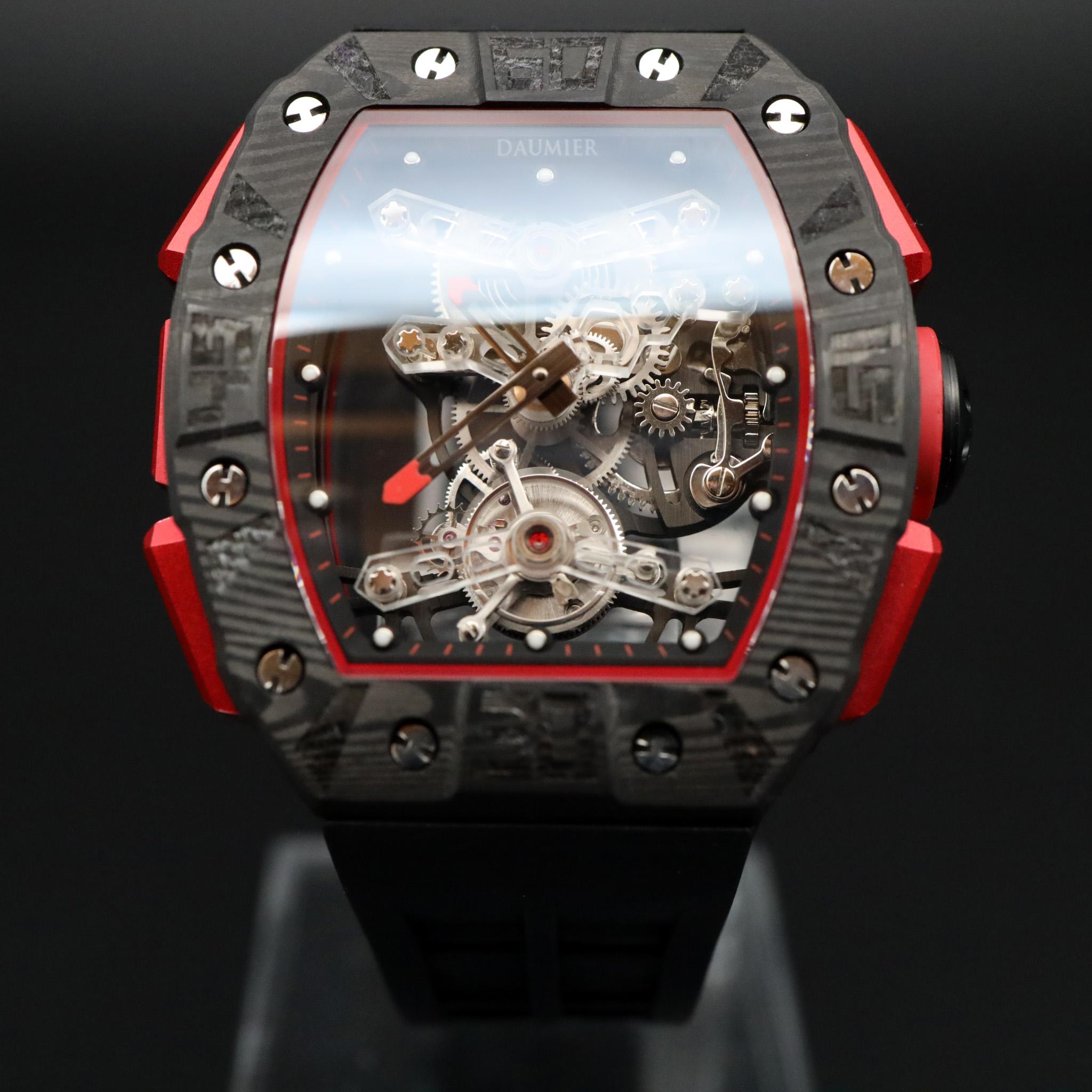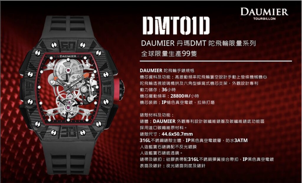 機芯資料及功能:高擺動頻率陀飛輪鏤空設計手動上發條機械機芯,陀飛輪透視劍形橋拱及六角型蜂巢式設計機芯支架,並獲得外觀設計專利