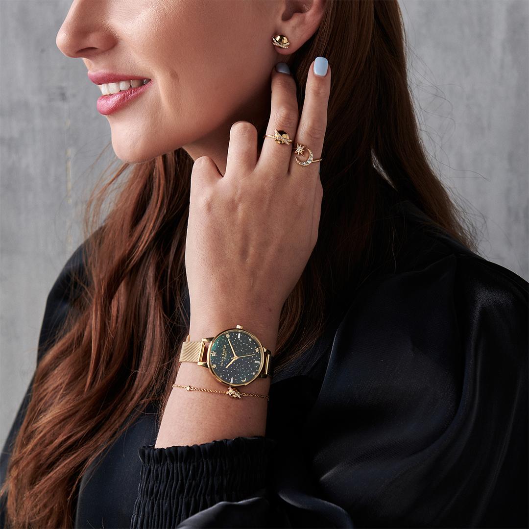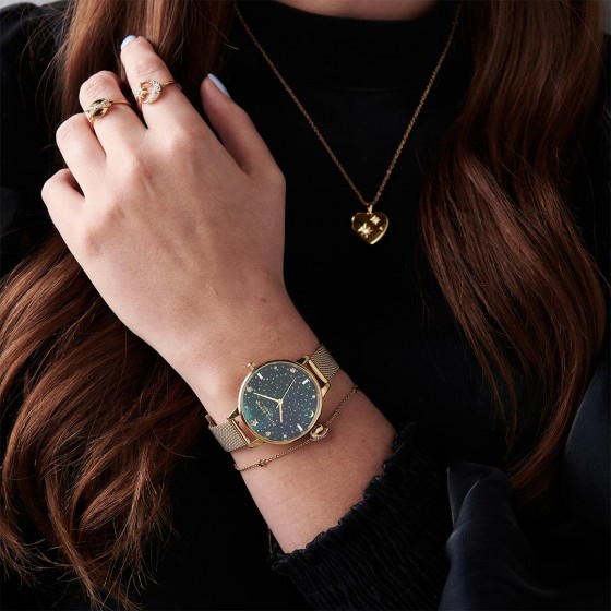 ● 腕帶材質 : 金色不銹鋼米蘭編織錶帶