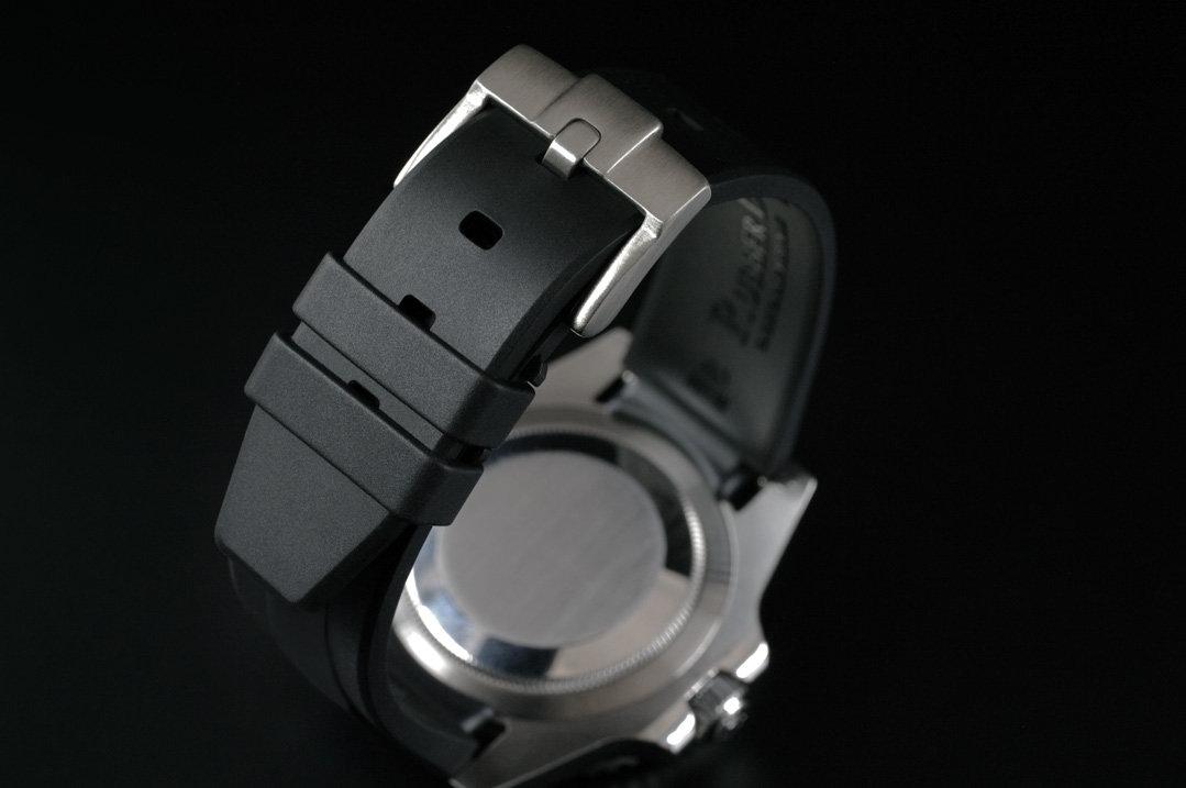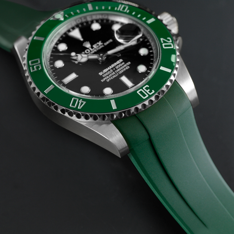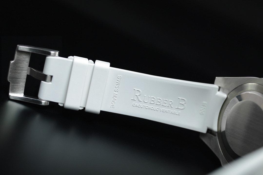 硫化橡膠錶帶經過精確校準以適合 41 毫米勞力士 Submariner Ceramic(126610LN、124060LV、126613LN、126613LB、126619LB)。這款錶帶採用“Blocked Integration”工程設計,採用實心嵌件,完美無瑕地固定在 Submariner Ceramic 41 錶殼*上。