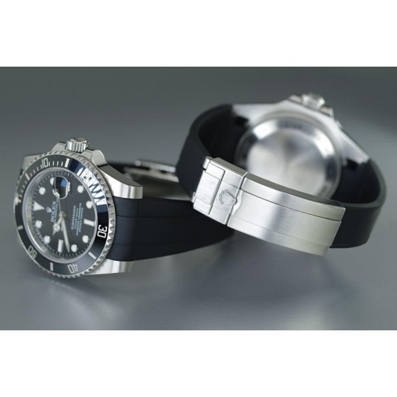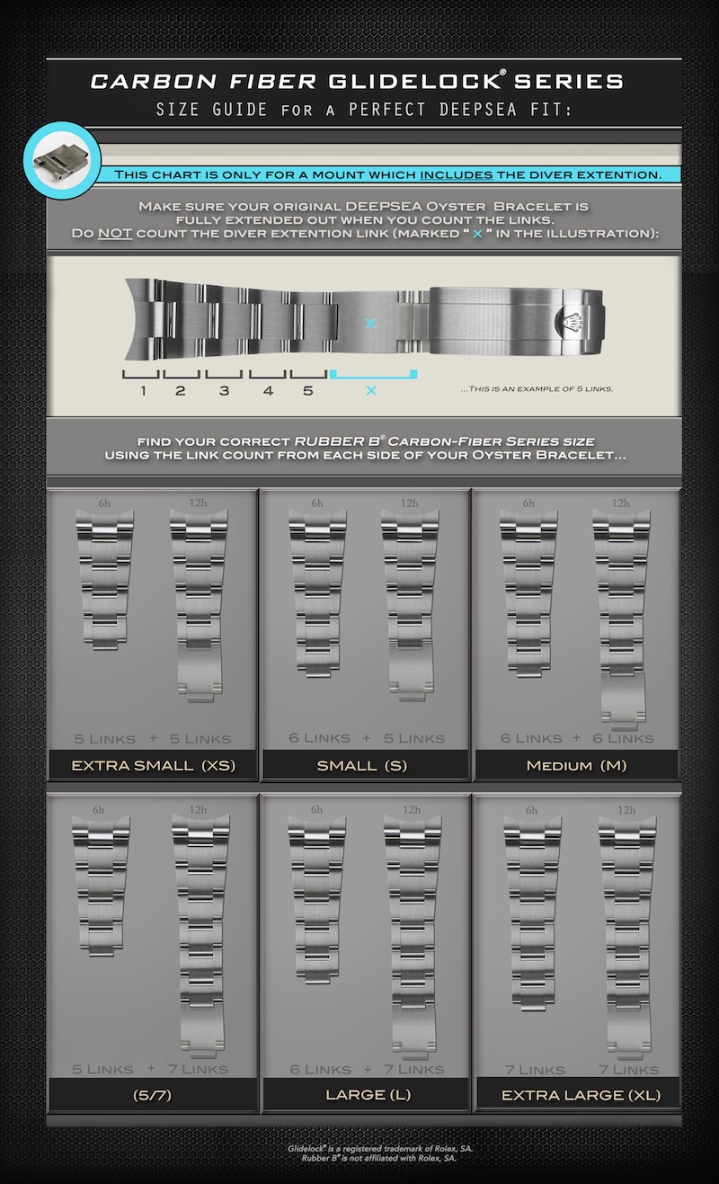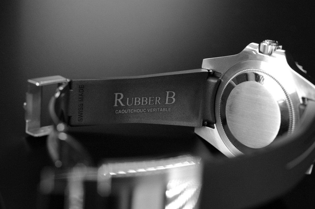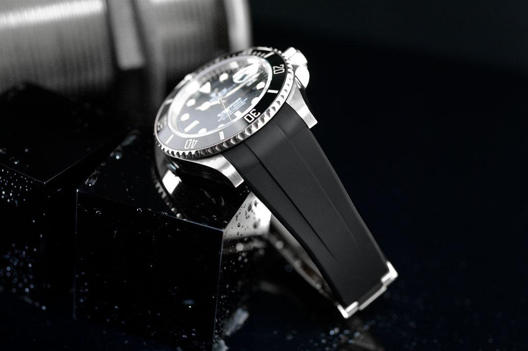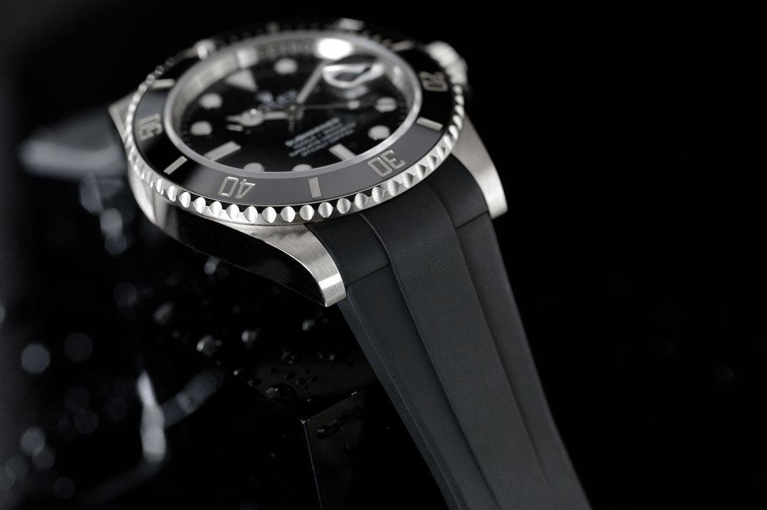 碳纖維繫列橡膠錶帶專為 41 毫米勞力士 Submariner 陶瓷錶殼和 Glidelock 表扣*(126610LN、124060LV、126613LB、126619LB)而設計。Rubber B 獨有的 STRENGTH INFUSION TECHNOLOGY 為您的 Rolex Glidelock Clasp 提供升級的支撐,以抵抗摩擦、重量和頻繁的微調。碳纖維分子在成型過程中融合在硫化橡膠中。結果:顯著提高了垂直和橫向應力抵抗力,同時保持佩戴者手腕周圍的柔軟、靈活舒適。