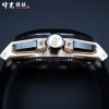 【錶殼】:18K玫瑰金錶殼,搭配經防炫光處理藍寶石水晶玻璃鏡面與底蓋、黑色陶瓷錶圈、按鈕與旋入式錶冠、微珠噴砂18K玫瑰金按鈕保護裝置