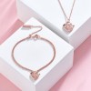 Olivia Burton OBGSET158 玫金殼閃耀黑面皮帶腕錶搭玫金愛心手鏈套組