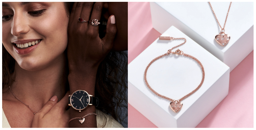 Olivia Burton 耶誕限定 ! 閃耀時尚氣息的耶誕限定套組,以閃亮的星燦黑腕錶搭配玫瑰金愛心手鍊,綻放甜美迷人的時尚氣息,是粉絲們必不容錯過的限量組合 !
