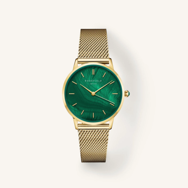 翡翠綠珍珠母貝錶面搭配復古輪廓,絕美的森林系質感,腕錶亦是珠寶配飾,將女性柔美與經典永恆的奢華概念,注入在阿姆斯特丹時髦美學設計之中,隨著光影的照射,輝映出千變萬化的美麗風貌。