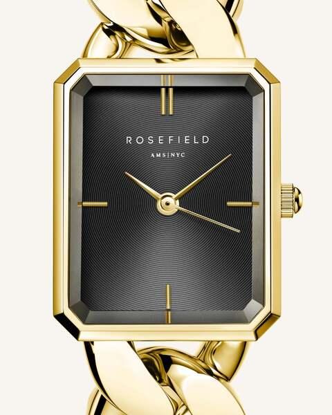 更輕靈小巧的錶徑,鐲鍊採用 Rosefield 品牌漏刻的 T 型錶扣閉合,可鎖定在 O 形環結,充滿優雅細節的復古輪廓。