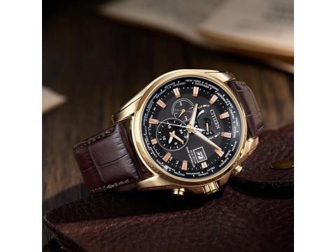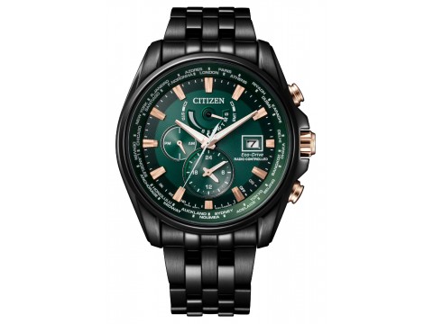 【高雄時光鐘錶】CITIZEN 星辰 AT9128-87X 綠面 光動能 世界時間 電波對時 萬年曆 腕錶
