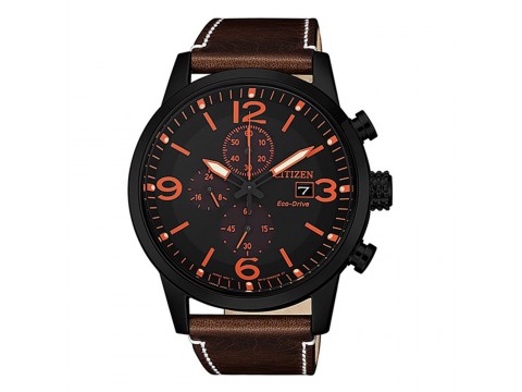 CITIZEN 星辰 錶 CA0617-11E 光動能城市計時碼錶-橘時標 腕錶