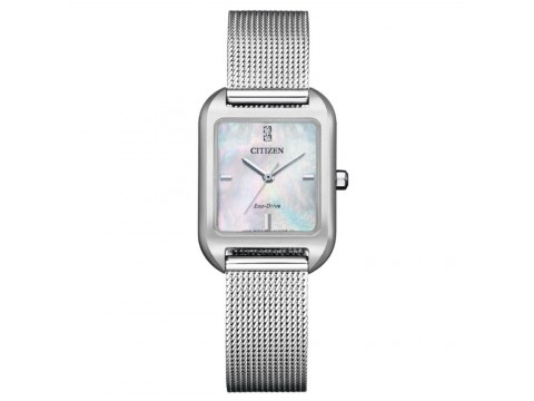 CITIZEN 星辰 錶 EM0491-81D 白蝶貝面盤 米蘭錶帶 方形小錶 光動能女錶