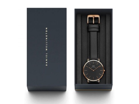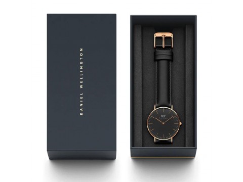 Daniel Wellington DW00100139 36mm 黑色真皮皮革錶 DW錶