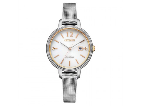 CITIZEN 星辰 錶 EW2449-83A 光動能時尚米蘭帶大三針女錶
