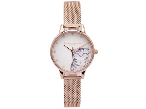 Olivia Burton OB16WL88 Q萌貓咪款米蘭帶錶帶手錶原裝英國進口 腕錶 女錶手錶生日