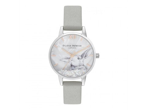 Olivia Burton OB16WL86 鋼殼兔子雙層白面滾珠鐵灰皮帶腕錶 Steel Grey 錶