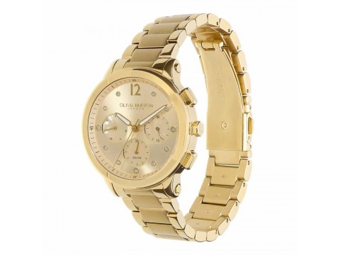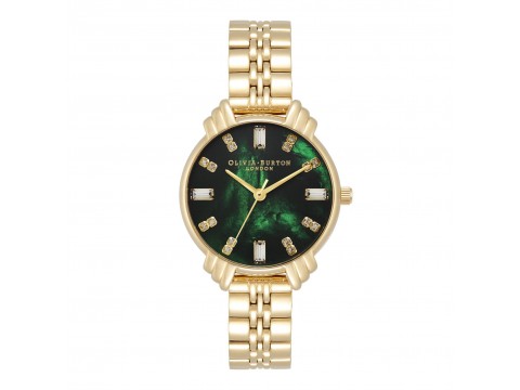 Olivia Burton OB16DC02 金色殼方鑽綠搪瓷面金色不銹鋼帶腕錶 OB錶 女錶手錶