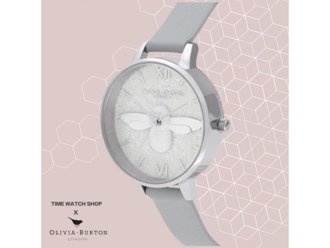 OLIVIA BURTON OB16GD52 鋼殼3D 大蜜蜂 閃耀銀面 ECO淺灰帶 腕錶