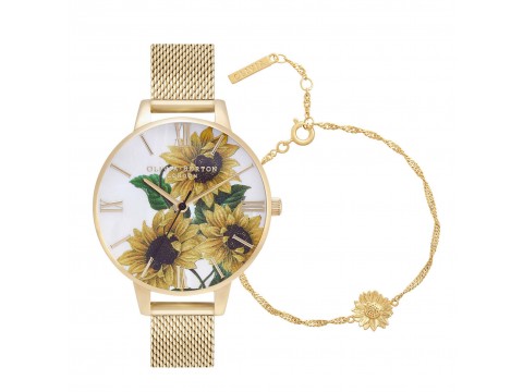 【高雄時光鐘錶】Olivia Burton OBGSET165 初夏氣息 向日葵 手鍊腕錶 套組 Sunflower