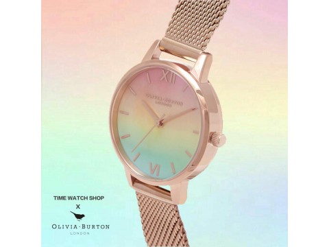 【時光鐘錶公司】Olivia Burton OB16RB25 玫金殼彩虹漸層母貝面玫金色米蘭帶腕錶手錶生日禮物情人節禮物
