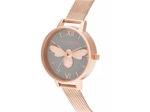 【高雄時光鐘錶】 OLIVIA BURTON 灰面 立體蜜蜂 玫金殼 米蘭帶腕錶 LUCKY BEE OB16FB10