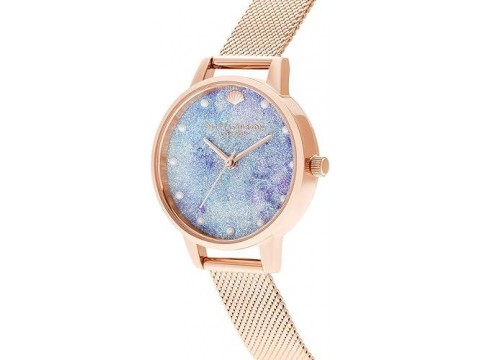 【高雄時光鐘錶公司】Olivia Burton OB16US44 貝殼珍珠閃耀藍紫面 不鏽鋼玫金殼 米蘭帶腕錶