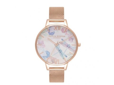 【高雄時光鐘錶】 Olivia Burton OB16PP83 花繪系列 玫瑰金殼 彩繪蜻蜓 嫣粉皮帶 腕錶