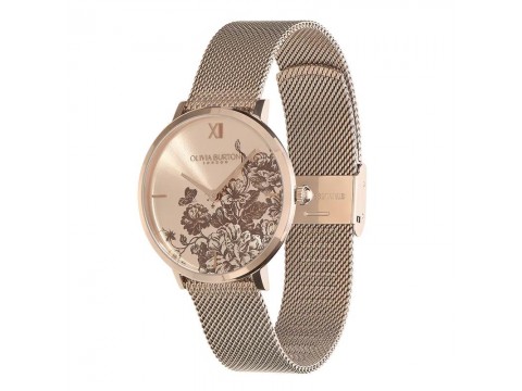 【高雄時光鐘錶】Olivia Burton 24000116 Signature 手繪花卉 玫瑰金 不鏽鋼 米蘭錶帶女錶