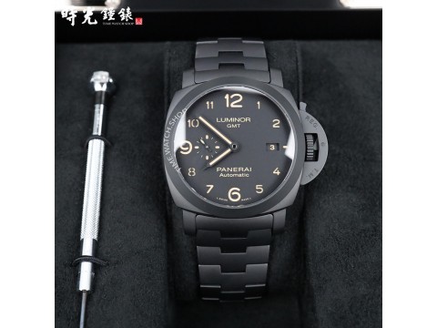 PANERAI 沛納海 PAM01438 PAM1438 黑色陶瓷 啞光黑 黑面 經典三明治面盤兩地時區
