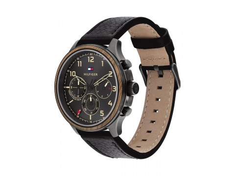 【高雄時光鐘錶】Tommy Hilfiger 木紋外圈 質感 三眼 皮革帶 男錶 腕錶 1791854