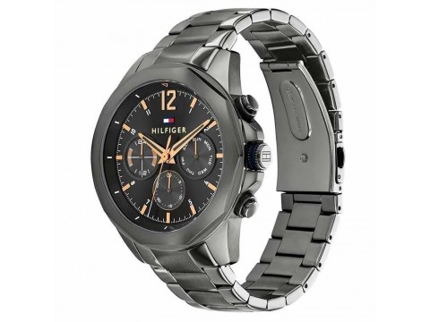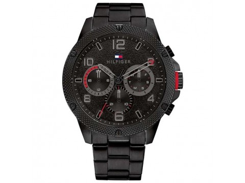 原廠保固兩年【高雄時光鐘錶】Tommy Hilfiger 1792030 黑鋼三眼 悍鋒不鏽鋼目 腕錶