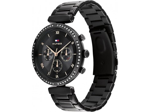 原廠保固兩年【高雄時光鐘錶】Tommy Hilfiger 1782390 華麗晶鑽 三環 日曆 女錶 黑色