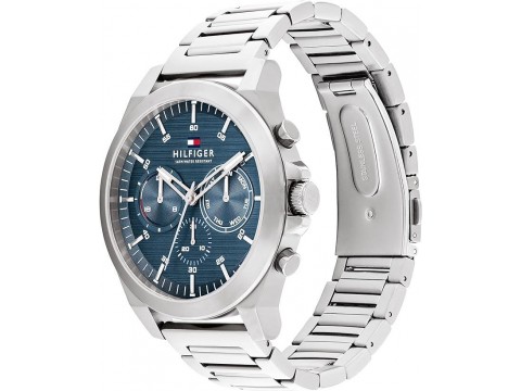 原廠保固兩年【高雄時光鐘錶】Tommy Hilfiger 1710518 銀殼 藍面 計時 月份 星期 顯示 腕錶 男錶