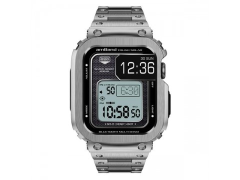 AmBand Apple Watch 專用保護殼 銀色軍規級全不鏽鋼殼帶 7/6/SE/5/4
