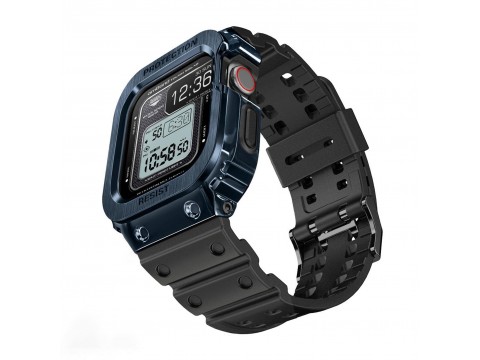 AmBand Apple Watch 專用保護殼 海軍藍軍規級鋼殼 X TPU 錶帶 44mm